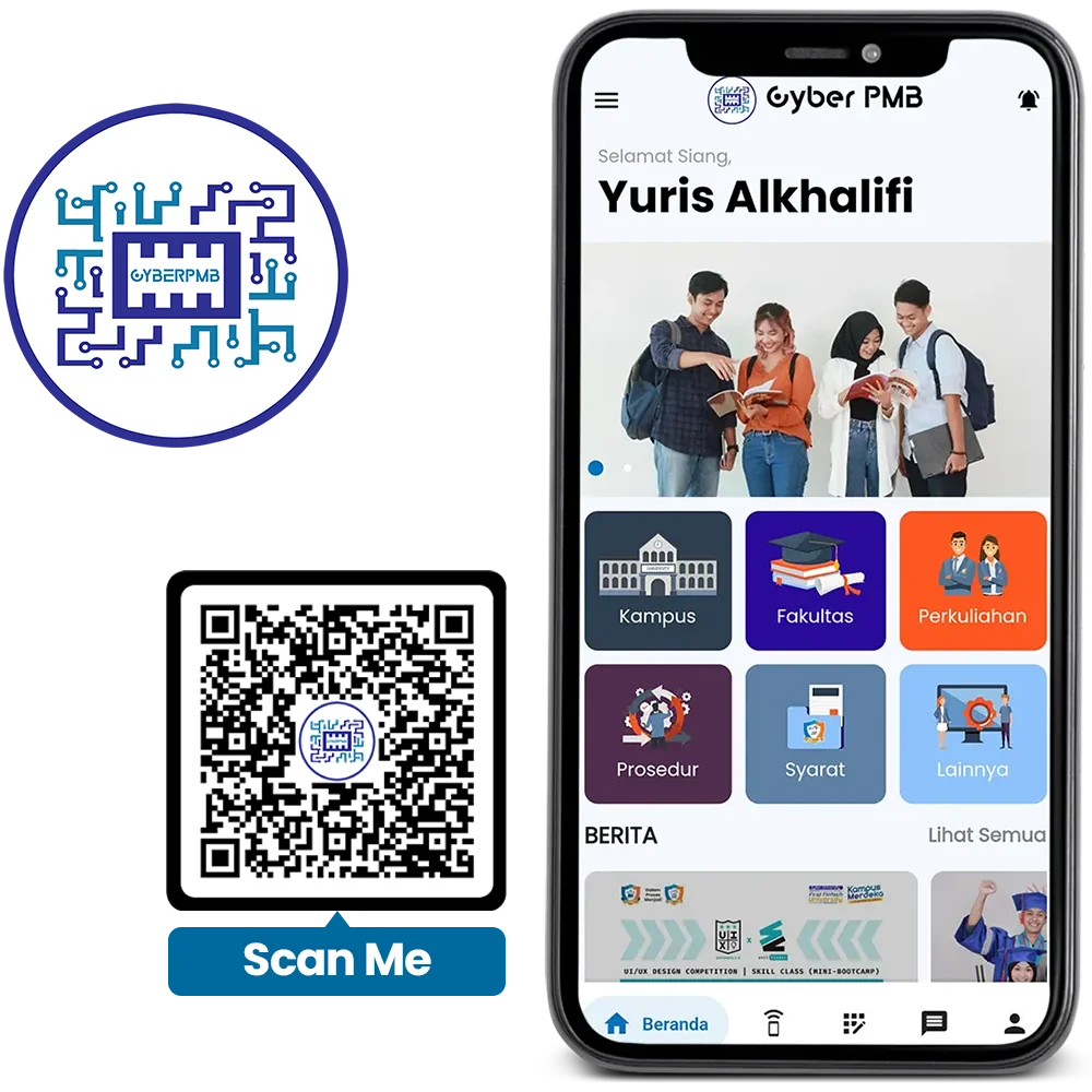 Maksimalkan pengalaman pendaftaranmu. Selain versi web, akses aplikasi mobile Cyber PMB untuk proses registrasi yang lebih seamless dan fleksibel.